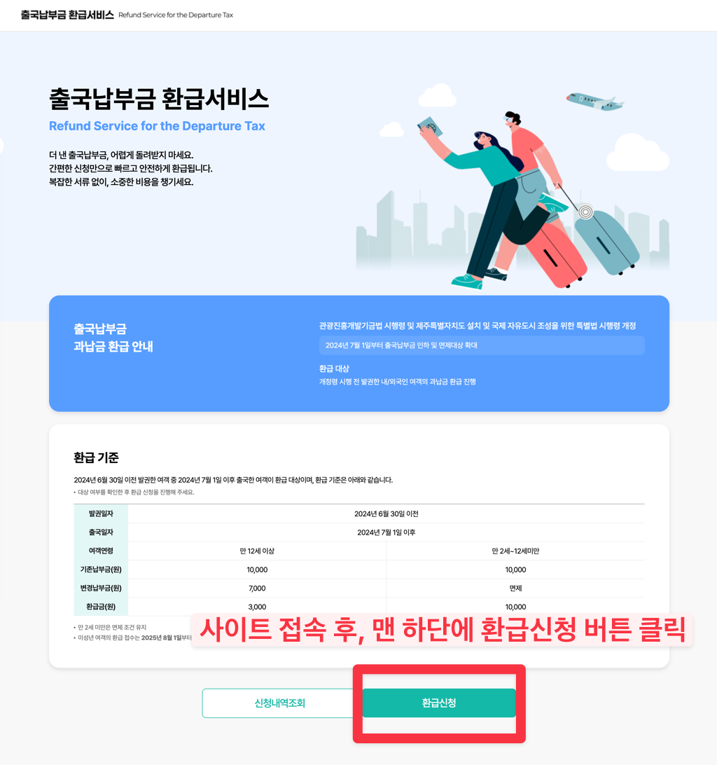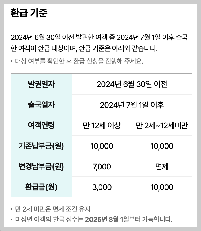 → 제도 개편으로 2024년 7월1일 이후 출국한 만 12세미만 어린이는 납부했떤 전액을 환급받을 수 있습니다. - 기타 면제 대상자
