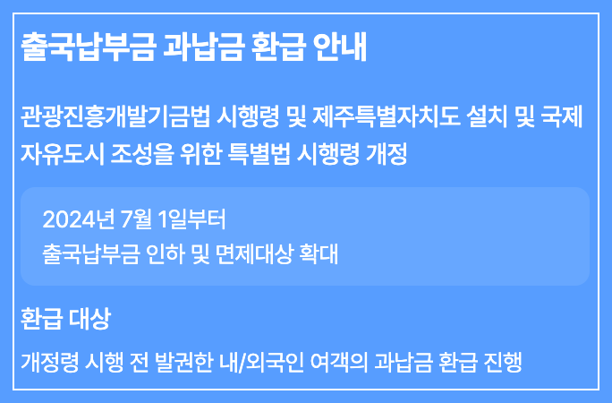 2024년 7월 1일부터 출국납부금 관련 제도가 일부 변경되면서 일부 비용을 환급받을 수 있게 되었습니다.